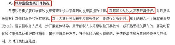 各级税务机关要以增值税发票管理系统中采集到的发票数据为依托,跟踪监控纳税人发票开具情况,并且据此采取有针对性的服务和管理措施。对于大量开具旧税率发票等情况,要进行分析研判。
