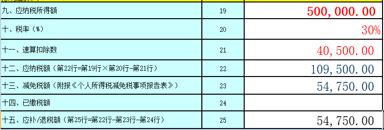 那么全年应纳税额=150*35%-6.55-0.6=45.35